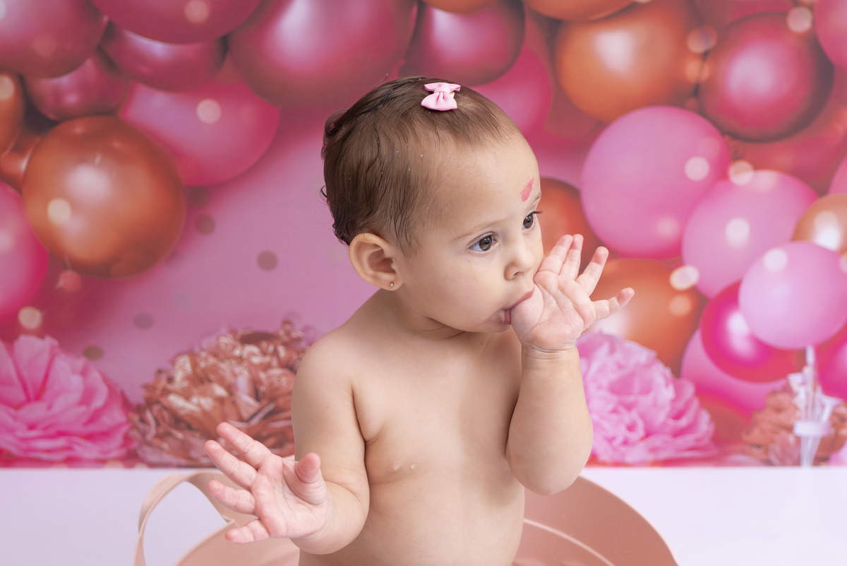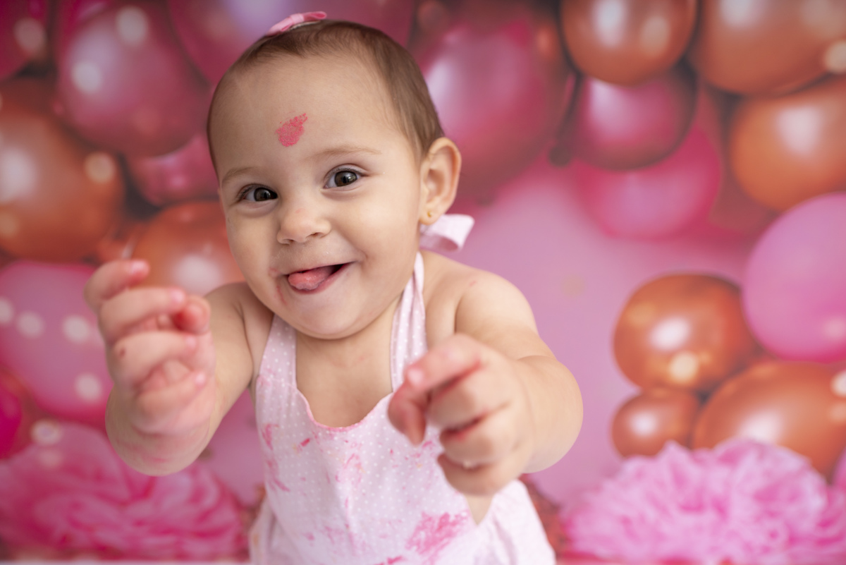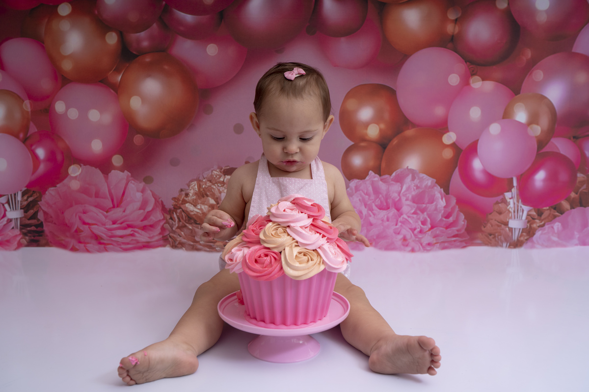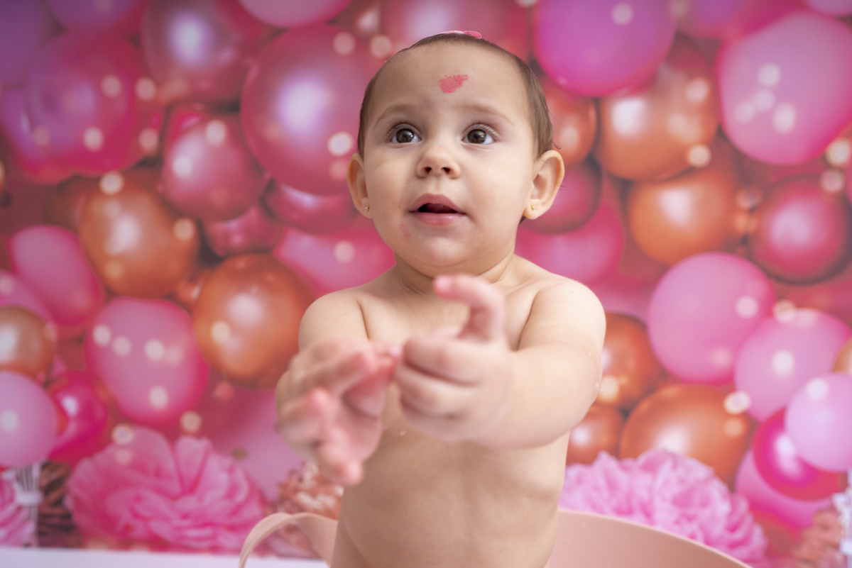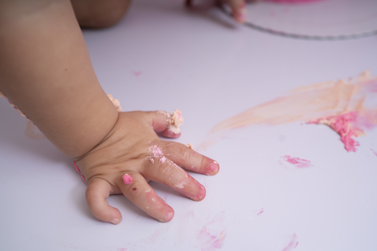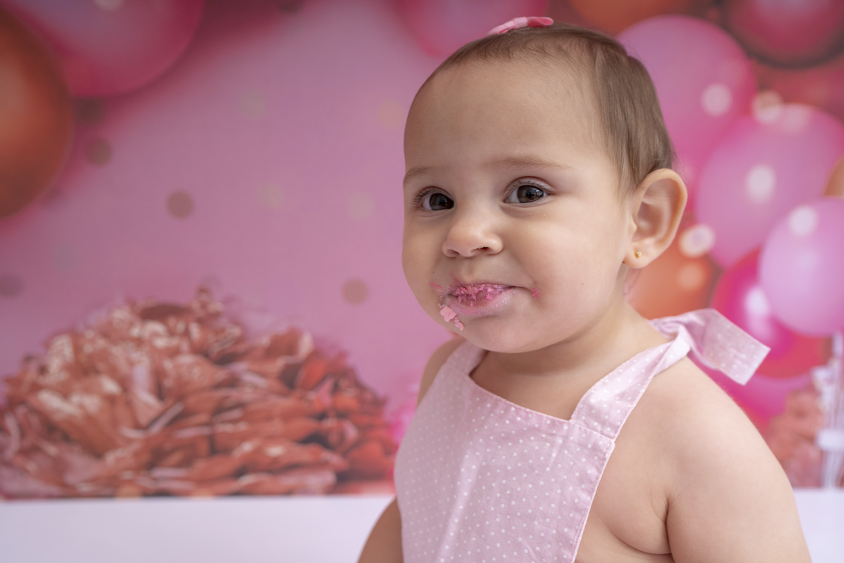 Bia e seu primeiro aninho descobrindo novas texturas (bolo sem açúcar, feito especialmente para bebês)!