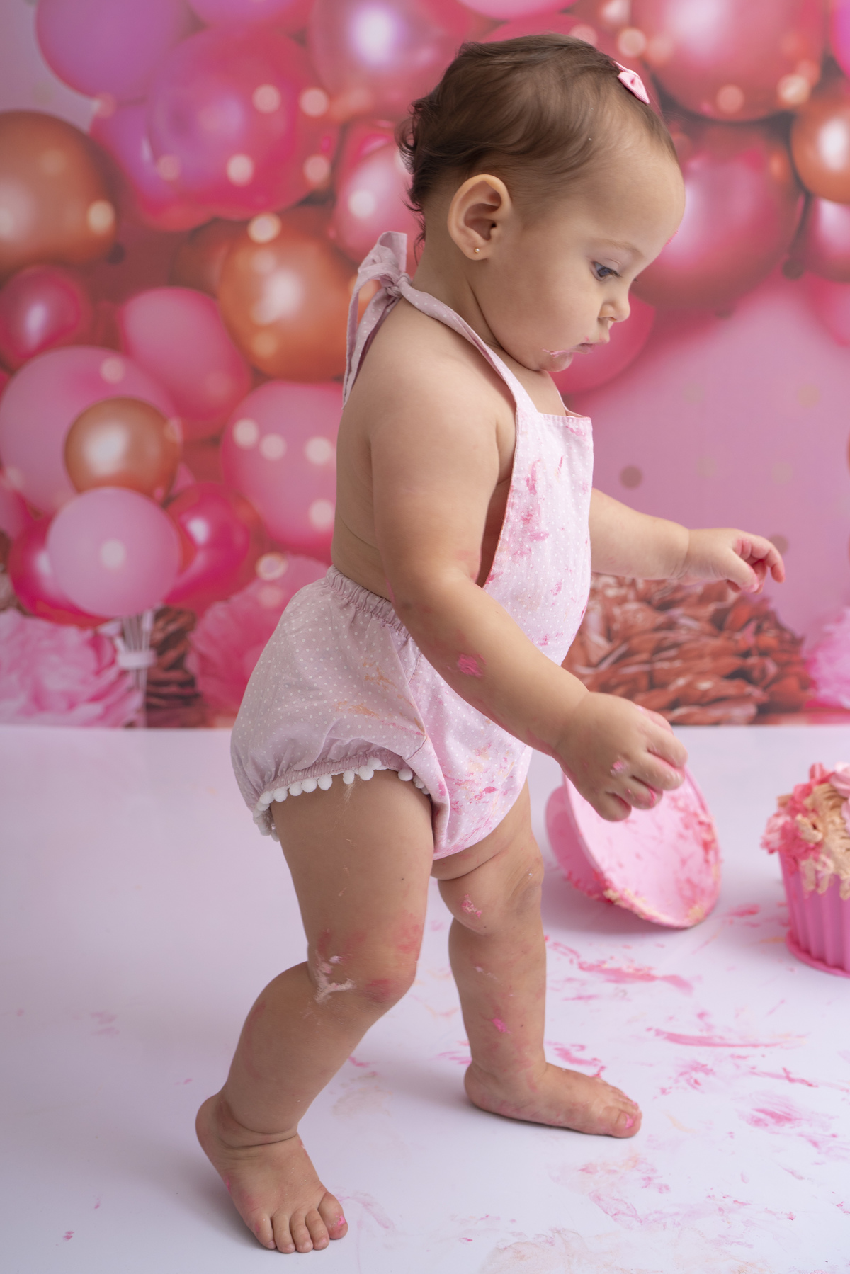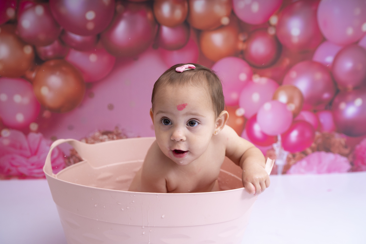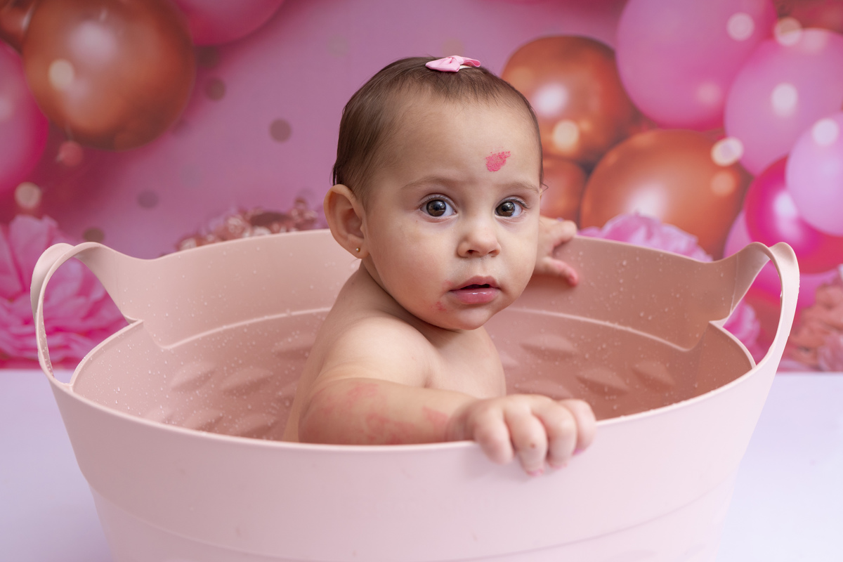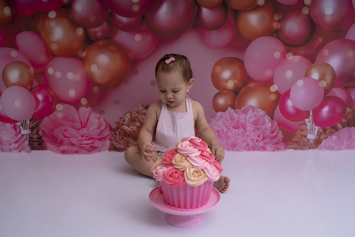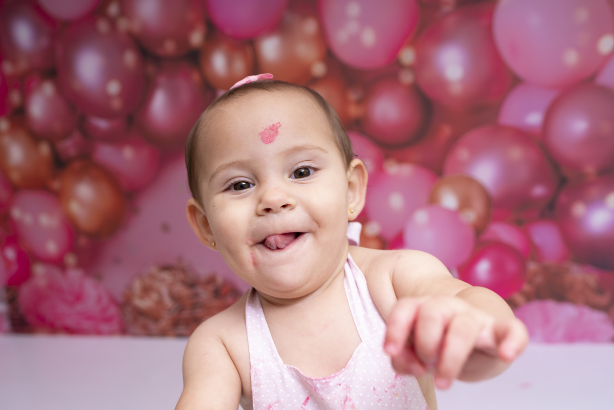 Bia e seu primeiro aninho descobrindo novas texturas (bolo sem açúcar, feito especialmente para bebês)!