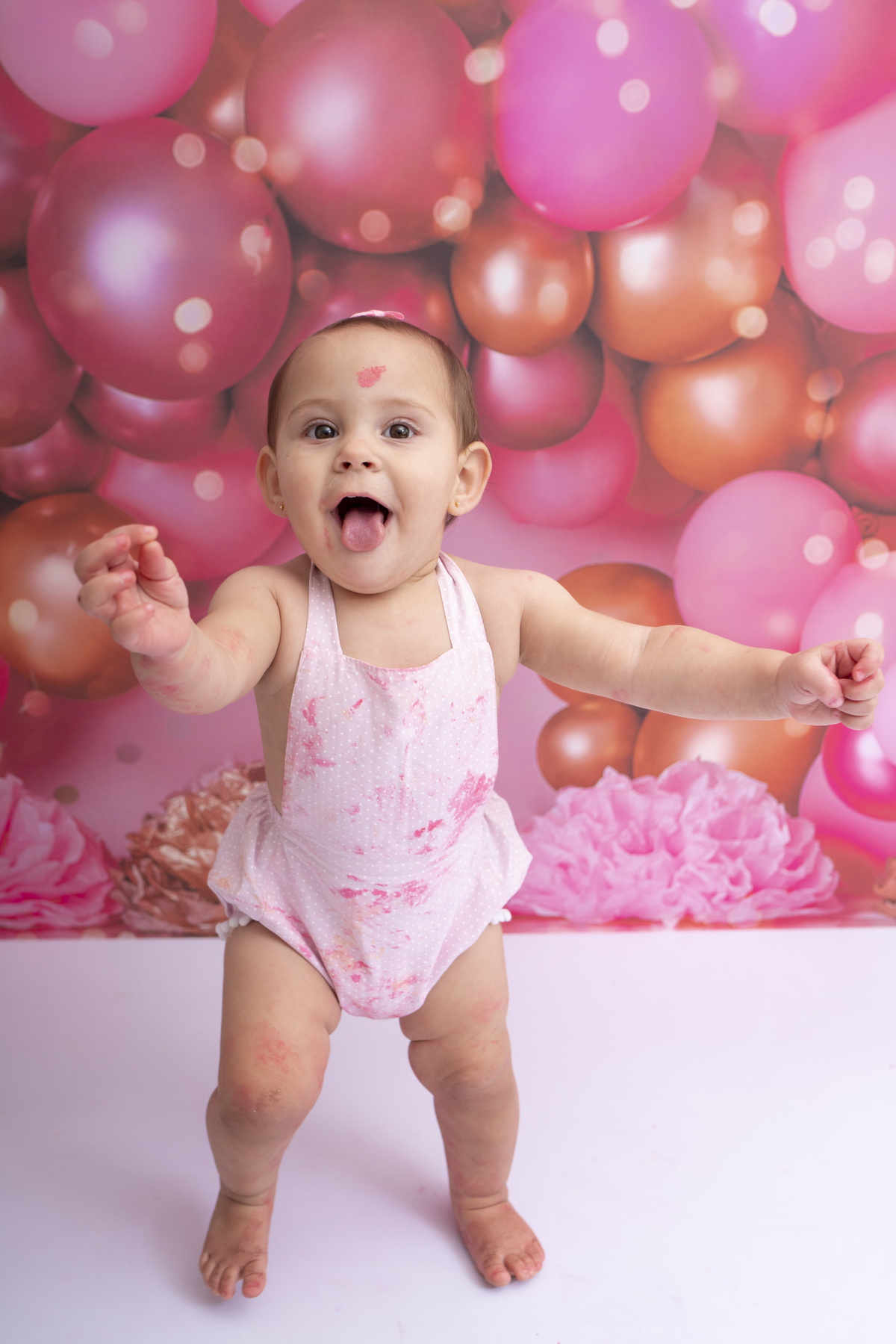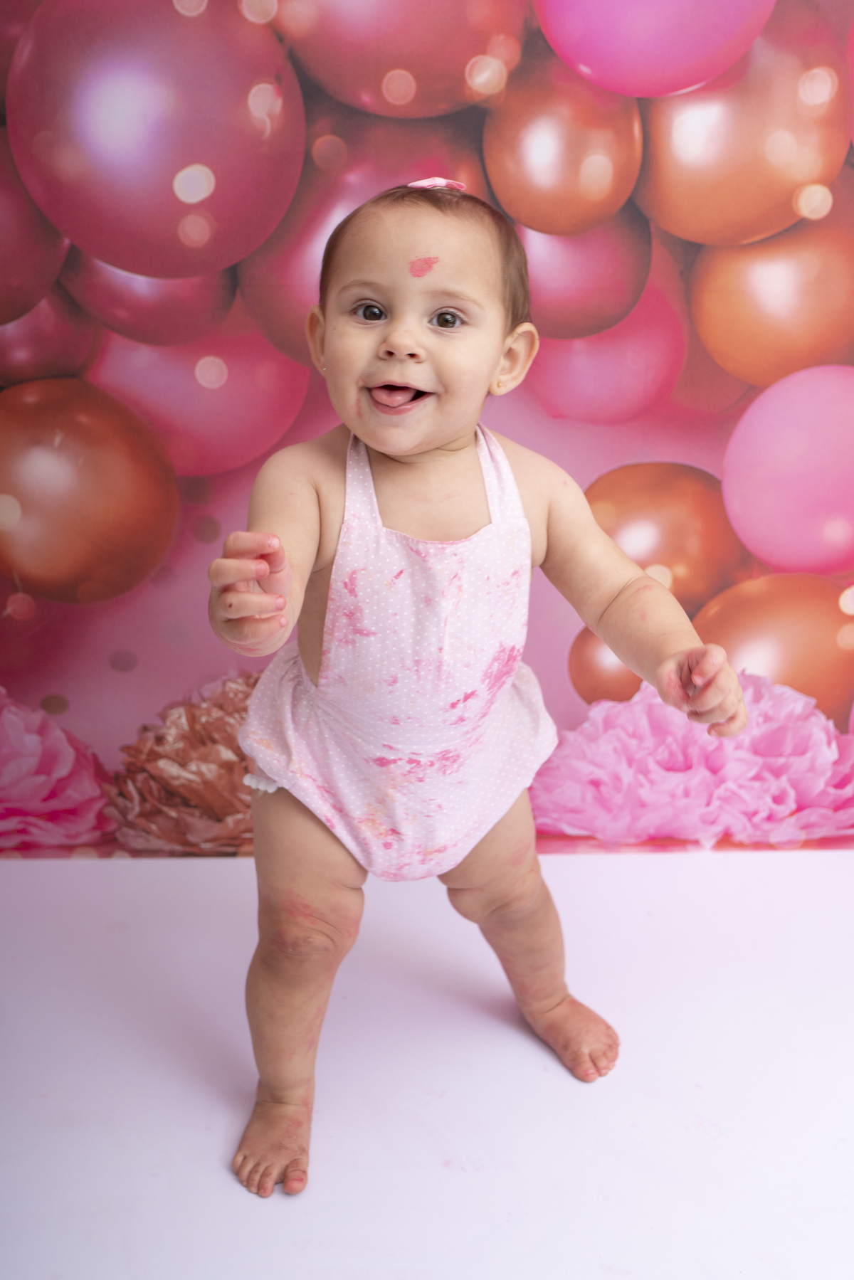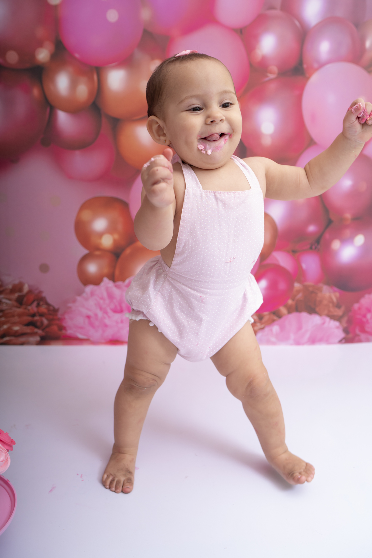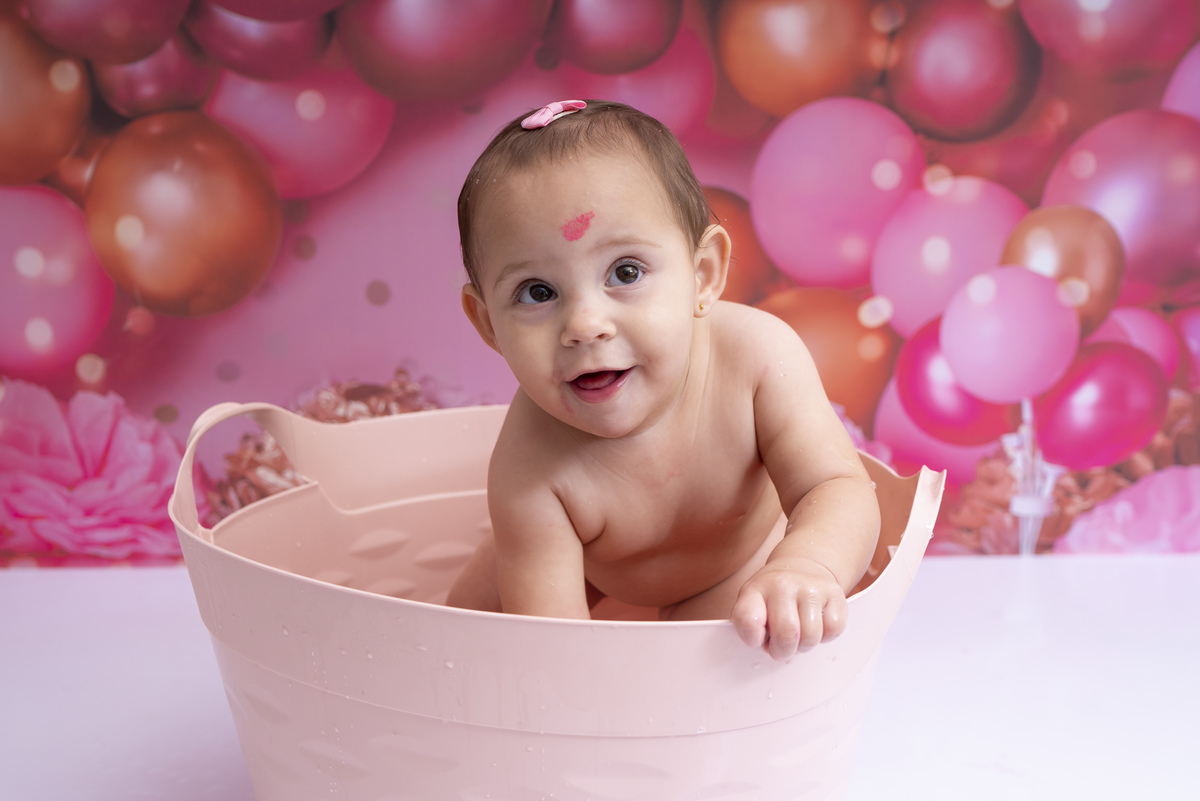 Bia e seu primeiro aninho descobrindo novas texturas (bolo sem açúcar, feito especialmente para bebês)!